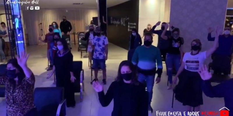 Na transmissão que foi feita no Facebook é possível ver que a grande maioria dos presentes estava com máscara e as cadeiras estavam distanciadas uma das outras. Apenas o pastor e as cantoras não estavam com o acessório de proteção contra o coronavírus.
