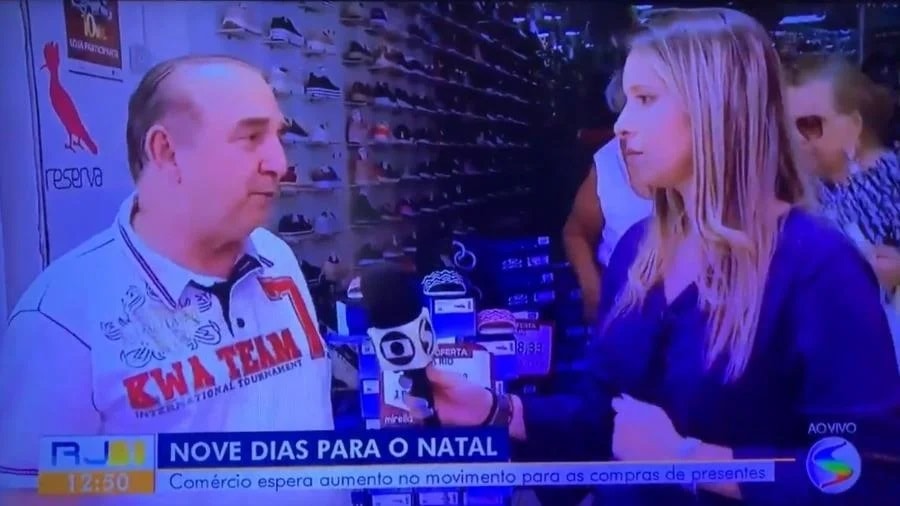 Cássia Carioca realizava uma entrevista para o RJ1 sobre o movimento do comércio, quando passou mal e desmaiou.