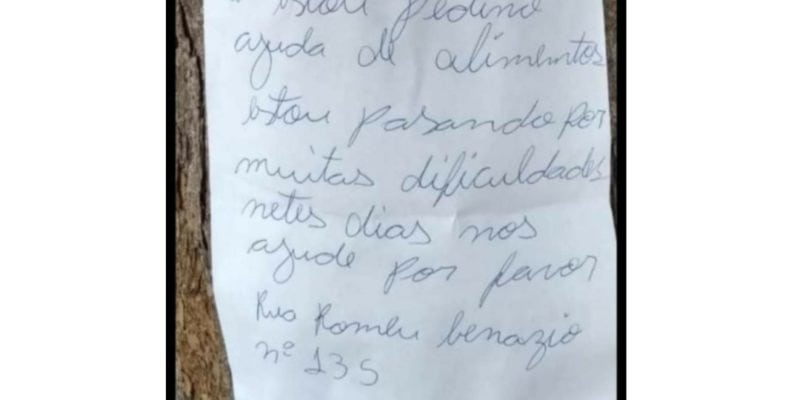 Uma moradora de Americana resolveu pedir ajuda de uma forma diferente. Ela colou em uma árvore do bairro Nova Carioba um bilhete em que pede a doação de alimentos.