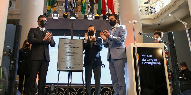 O Governador João Doria reabriu oficialmente neste sábado (31) o Novo Museu da Língua Portuguesa, reconstruído após um incêndio em dezembro de 2015. A solenidade contou com a presença de autoridades nacionais e internacionais, entre elas os Presidentes de Portugal, Marcelo Rebelo de Sousa, e Cabo Verde, Jorge Carlos Fonseca, o Ministro da Cultura de Angola, Jomo Francisco Fortunato, os ex-Presidentes brasileiros Fernando Henrique Cardoso e Michel Temer e o Prefeito de São Paulo, Ricardo Nunes, entre outras.
