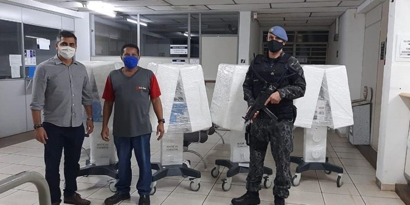 Os respiradores que foram importados da Turquia chegaram por volta das 19h30, com escolta policial, na secretaria de Saúde da cidade e foram recebidos pelo secretário Gleberson Miano.
