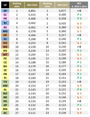 De acordo com o estudo, a região Sul do Brasil apresentou uma evolução significativa, influenciada, sobretudo, pelos resultados do Paraná e de Santa Catarina. No período analisado, o estado paranaense subiu da 6ª para a 3ª posição no ranking.