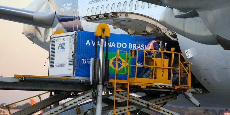 Em abril foram recebidos três mil litros de IFA. Em março, uma remessa de 8,2 mil litros de insumo, correspondente a cerca de 14 milhões de doses, chegou ao instituto. Outros 11 mil litros de insumos desembarcaram no país em fevereiro. No final de 2020, o Butantan já havia recebido IFA que rendeu 3,8 milhões de vacinas.